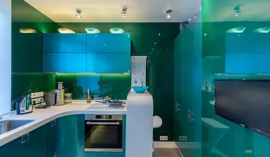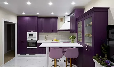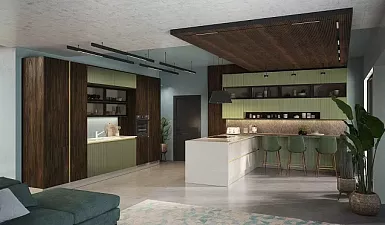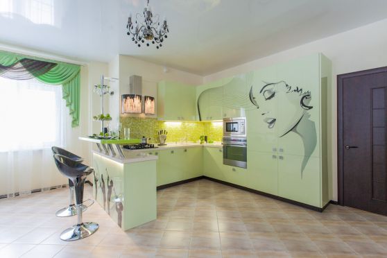 Самыми удобными считаются модульные кухонные гарнитуры, изготовленные на заказ. Когда можно индивидуально определиться с размерами и количеством шкафов, их формой и наполнением. С помощью модульной кухни можно визуально разделить просторное помещение на несколько зон. Для этого подходят модели с барными стойками и островами.