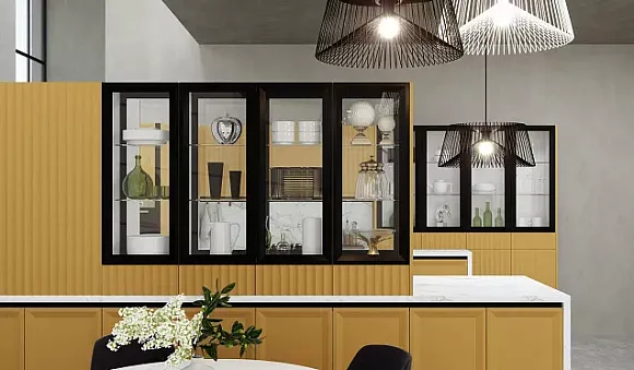 Высокие шкафы, достигающие потолка, обладают повышенной вместительностью и позволяют сэкономить место в самом небольшом пространстве. Подобные решения – идеальный вариант, когда хозяева обладают большим количеством кухонной утвари и техники, но располагают достаточно скромной площадью для хранения этих вещей. С вертикальными шкафами не придется задействовать антресоли гостиной или прихожей, все уместится на кухне. На самых верхних полках можно расположить банки для заготовок, праздничный текстиль и другие предметы, которые используются крайне редко. А в остальных системах хранения уместить все, что требуется ежедневно.