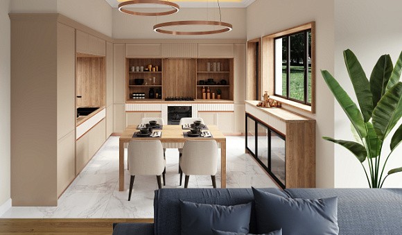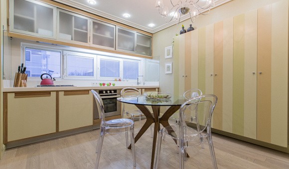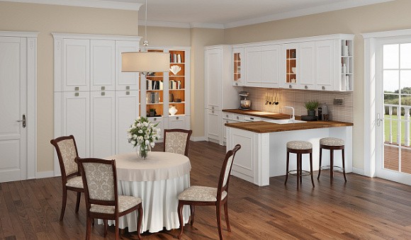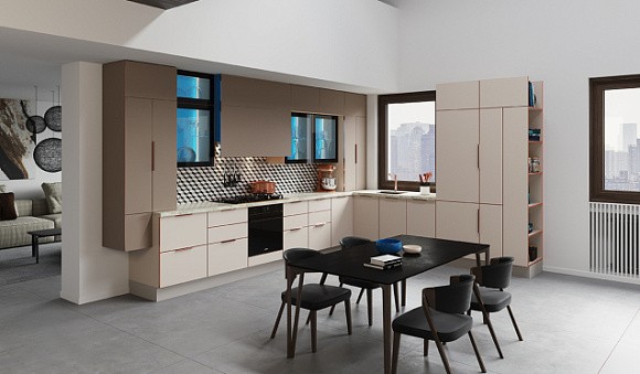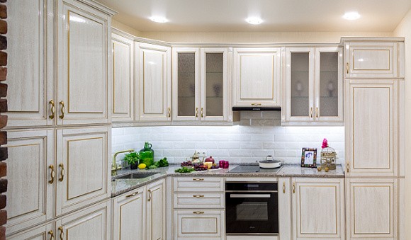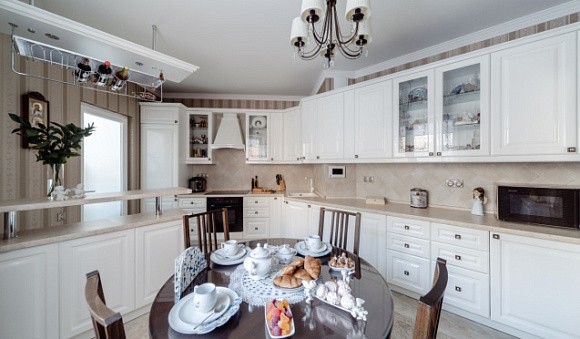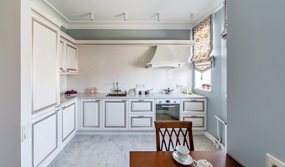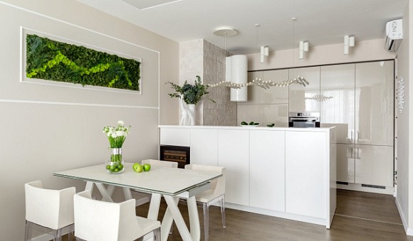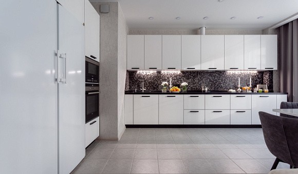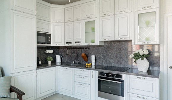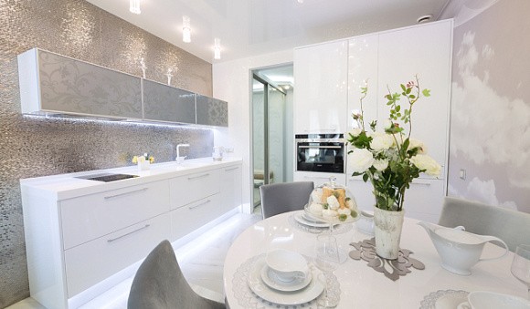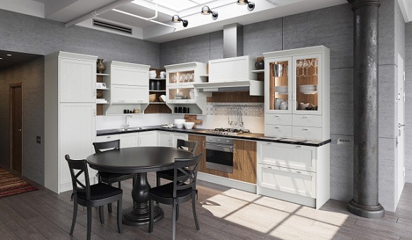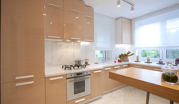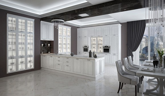 Визуальное расширение пространства. Кухни в светлых тонах подходят даже для небольших комнат. Фасады подобных комплектов отражают солнечные лучи, за счет чего помещение кажется более просторным.