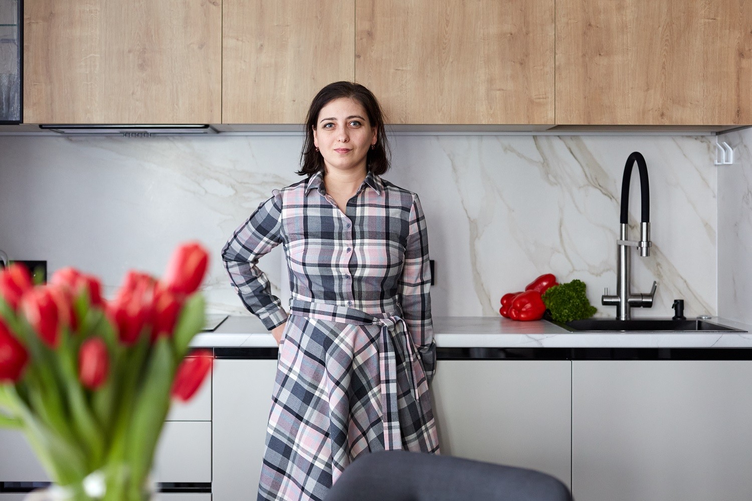 Выгода внушительна, а проект – прекрасен, ведь в нём гармонично замиксованы модный soft minimal и эко-стиль. Образ кухни выстроен на беспроигрышном сочетании чёрного и серого цветов с добавлением древесных фактур. Фасады «под дерево» созданы из экоплиты и взяты от гарнитура «Стоун Вуд». А поверхности цвета «серый шёлк» достались проекту от «Фаворита-1» – флагманской модели от КД. Все фасады легки, долговечны, а также устойчивы к механическим повреждениям, перепадам температур, загрязнениям и солнечному ультрафиолету. Как раз то, что нужно для современной кухни!