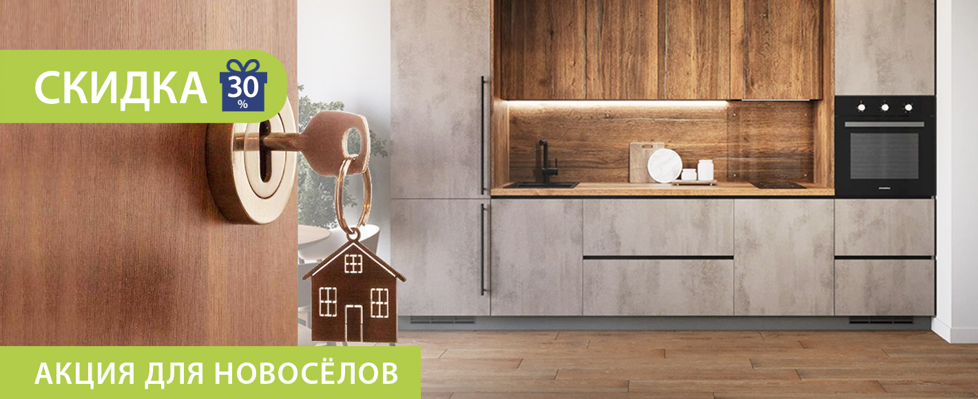 Отличная новость для тех, кто совсем недавно стал владельцем квартиры или дома! Кухонный Двор приглашает вас воспользоваться уникальным предложением и сделать заказ кухни со скидкой до 30%!